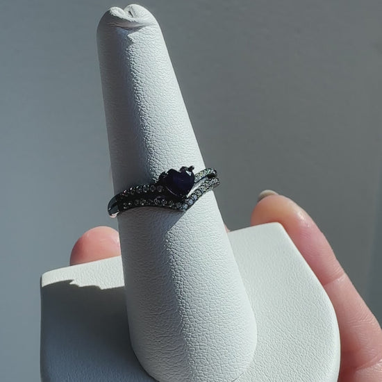 Amethyst Black Luxe Heart Ring | Adjustable Size